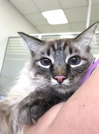 Кошка Ривия, беспородная, 1,5 года. Подброшена в клинику 1,5-месячным котёнком.